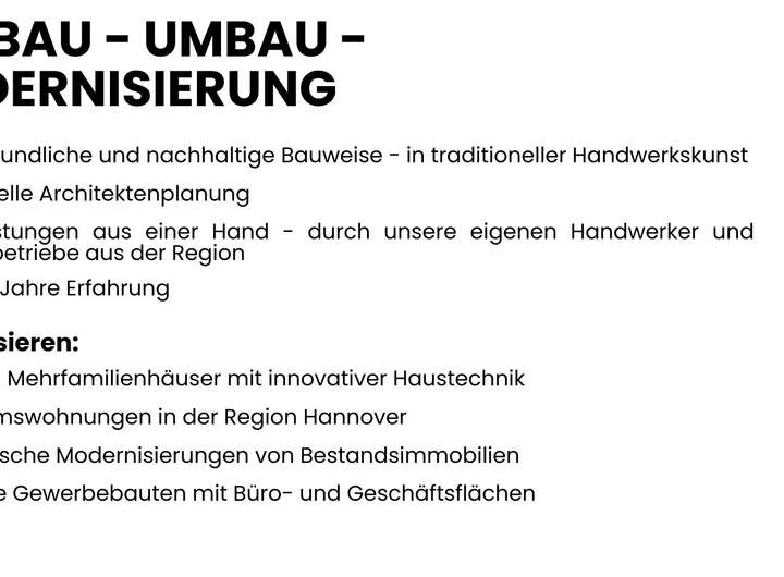 Nachfolgend genannte Leistungen werden im Rahmen des Modernisierungskonzeptes im Wert von 150.000 EUR von HANNOVER HAUS erbracht und sind im Festpreis schon enthalten: