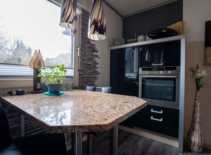 Die Küche ist mit einer ansprechenden Einbauküche ausgestattet.