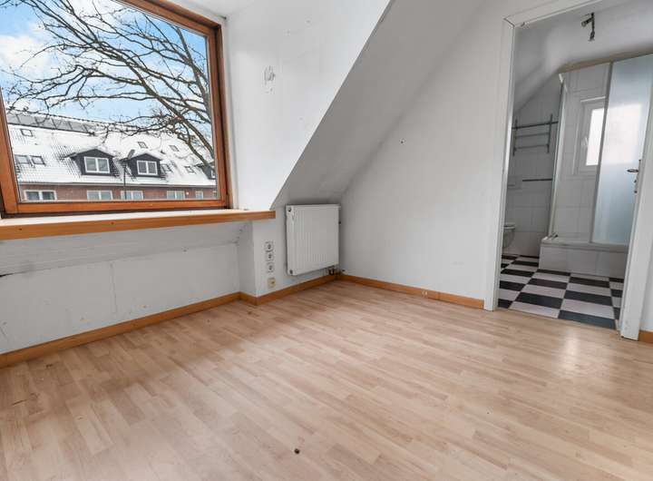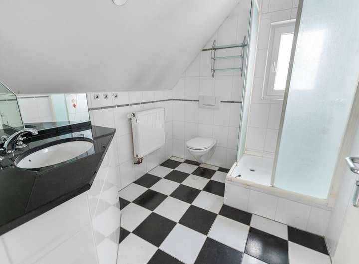 Im Obergeschoss befinden sich ein großzügiges Schlafzimmer sowie ein weiteres Zimmer, das sich ideal als Kinder-, Arbeits- oder Gästezimmer eignet. Ein Tageslicht-Duschbad komplettiert diese Etage.