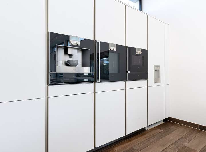 - Weinkühlschrank, Dampfgarer, Backofen, Fach für Tellerwärmer, Induktionsherd mit versenkbarem Dunstabzug, Kaffeeautomat, Gefrierschrank mit Eiswürfelfunktion u.v.m.