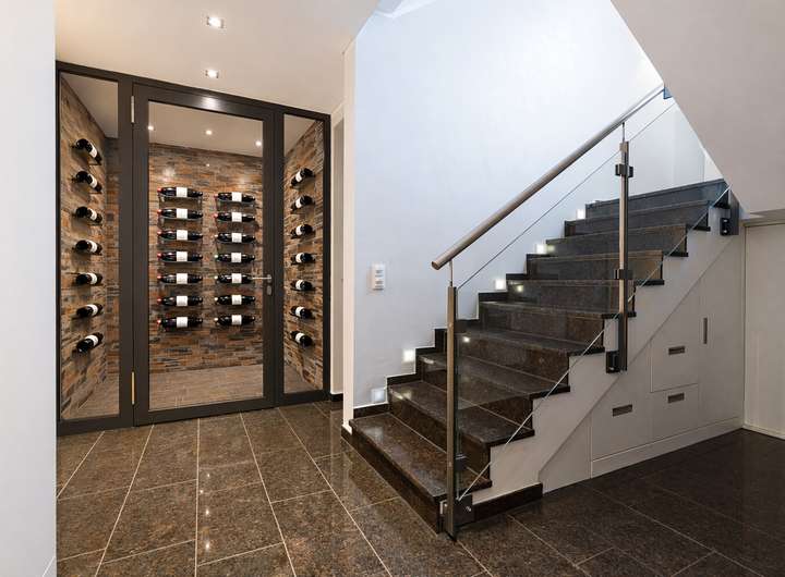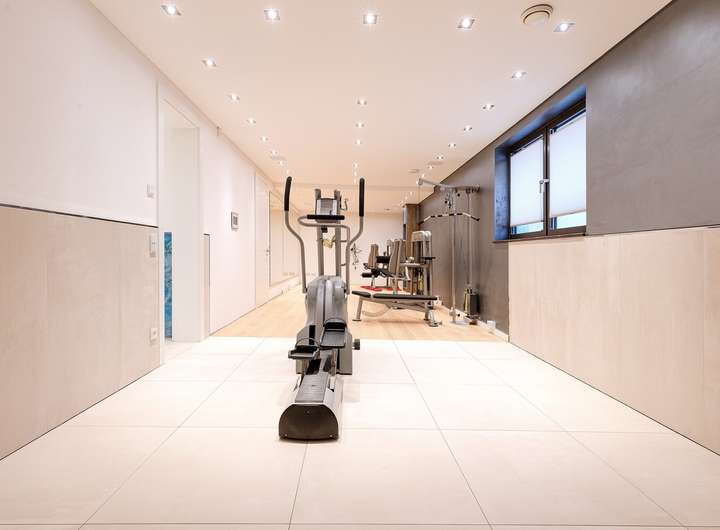 Das Untergeschoss bietet neben einem großen Gästezimmer mit anschließendem Duschbad, Platz für einen Whirlpool, sowie einen Raum für Sauna mit Ruheraum und Fitness. Ein Raum zur Gestaltung eines Weinkellers steht neben den Nutzräumen für Technik und Heizung ebenfalls zur Verfügung.