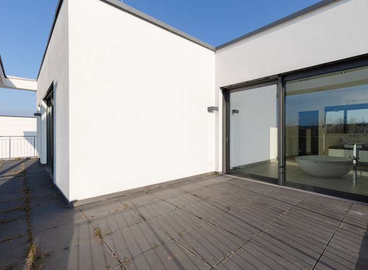 Das Staffelgeschoss beherbergt die luxuriös ausgestattete Eltern-Suite mit zwei großen Ankleiden und einem circa 20 m² großen Badezimmer mit freistehender Badewanne, sowie einer circa 34 m² großen Terrasse mit Blick ins Grüne und ein Arbeitszimmer.