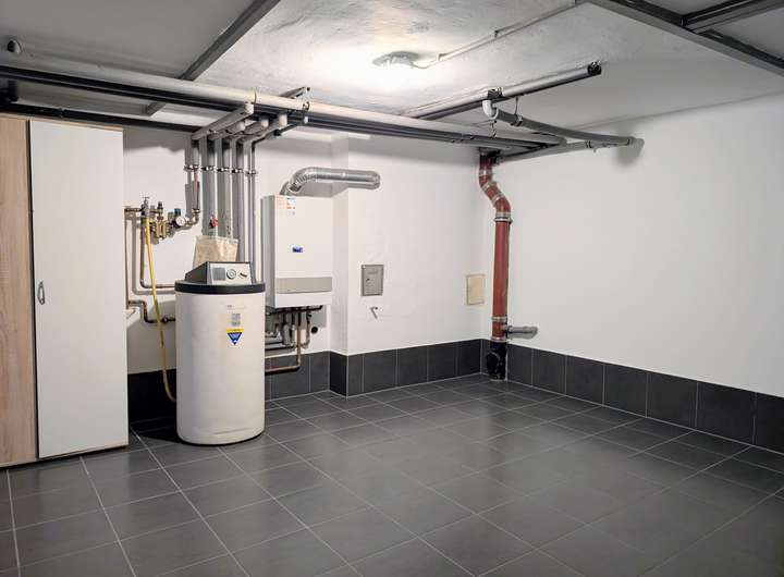 Als letzte Ebene schauen wir uns noch den praktischen Keller an, der auf ca. 36 m² in drei Kellerräumen ausreichend Staufläche bietet. Die Gas-Zentralheizung ist zwar aus 1994, wurde aber jährlich gewartet und funktioniert einwandfrei. Die Waschküche bietet über eine Außentreppe einen direkten Zugang zum Garten, Rohrleitungen zur Installation von Heizkörpern sind vorbereitet.
