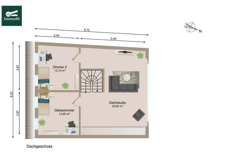 - Offenes Wohnkonzept: offene Küche mit Kücheninsel, großzügiges Dachstudio mit Balkon (gemäß Konzept)