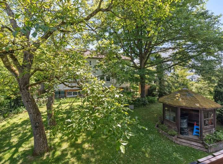 Der rückwärtige Garten ist ein echtes Highlight: viel Grün, kaum Einblicke, absolute Ruhe. Ob Spielen, Entspannen oder Gartenliebhaber – hier finden Sie einen Ort zum Abschalten und Wohlfühlen.