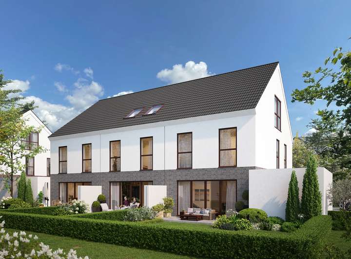 Das massiv gebaute Reihenhaus ist Teil einer exklusiven Wohnanlage mit nur drei Reihenhäusern und zwei Doppelhaushälften und überzeugt durch seine harmonische Architektur sowie ein angenehm privates Wohngefühl.