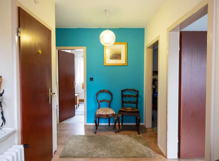 Im Erdgeschoss stehen drei Zimmer, ein Badezimmer, ein separates Gäste-WC sowie eine Küche mit Einbauküche zur Verfügung. Das Obergeschoss ergänzt das Raumangebot um zwei weitere Zimmer, ein Bad sowie eine Sauna, die zusätzlichen Wohnkomfort bietet. Die Immobilie ist mit Holz- und Kunststoff-Isolierglasfenstern ausgestattet und verfügt über einen Teilkeller für Abstell- und Nutzflächen.