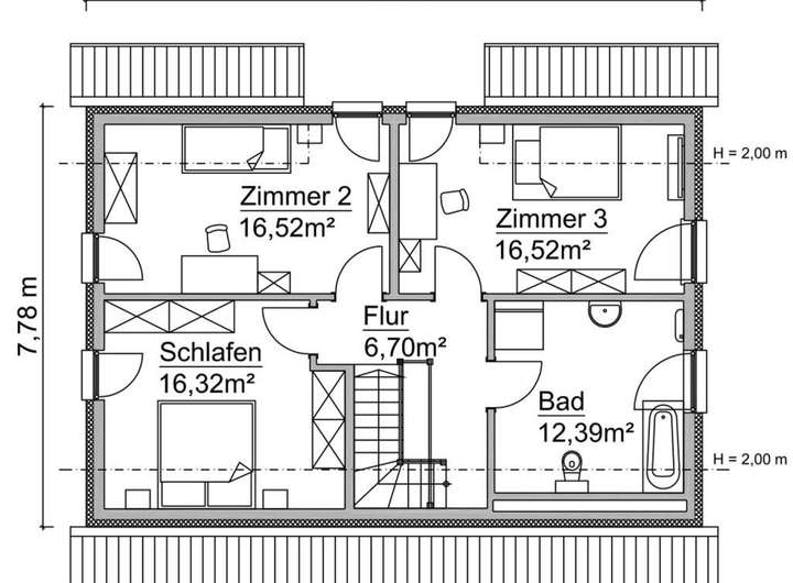 Mehr Wohnfläche und Licht ermöglicht Ihnen das SH 142 D FS dank des attraktiven Frontspießes und raumhoher Verglasung. Ein großzügiger Wohn-Essbereich mit Küche, der sich zum Garten hin öffnet, sowie klare Raumschnitte schaffen ein angenehmes Raumgefühl. Unterm Dach erwarten Sie drei weitere Zimmer und Bad – alle von der Diele aus begehbar.