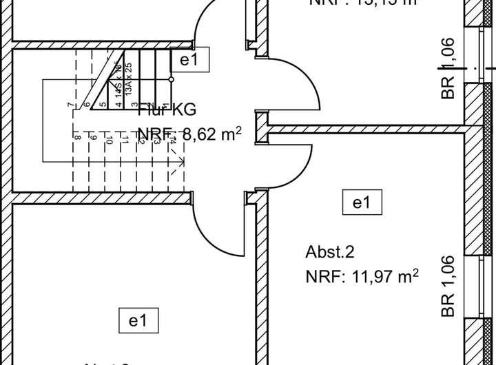 Jede Haushälfte bietet ca. 112 m² Wohnfläche auf Erd- und Obergeschoss sowie zusätzlich ca. 64 m² Nutzfläche im hellen Keller mit Lichtschächten.