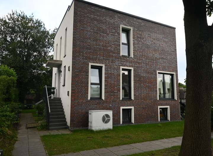 Diese architektonisch anspruchsvolle Doppelhaushälfte aus 2021 verbindet klare Linien, hochwertige Materialien und modernste Haustechnik – eingebettet in eine ruhige hintere Bebauung im beliebten Stadtteil Sasel.