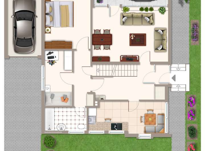 Treten Sie gerne ein und machen Sie sich mit der individuellen Raumaufteilung dieses Einfamilienhauses vertraut, die anhängenden Grundrisse geben Ihnen einen ersten Überblick über die gelungene Raumanordnung.