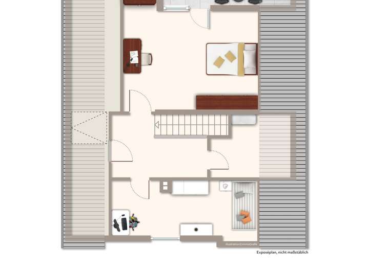 Im Obergeschoß finden Sie zwei weitere Räume für vielfältige Nutzungsmöglichkeiten. Ein Bodenraum kann nach entsprechenen Ausbauarbeiten zu einem weiteren Raum gestaltet werden.
