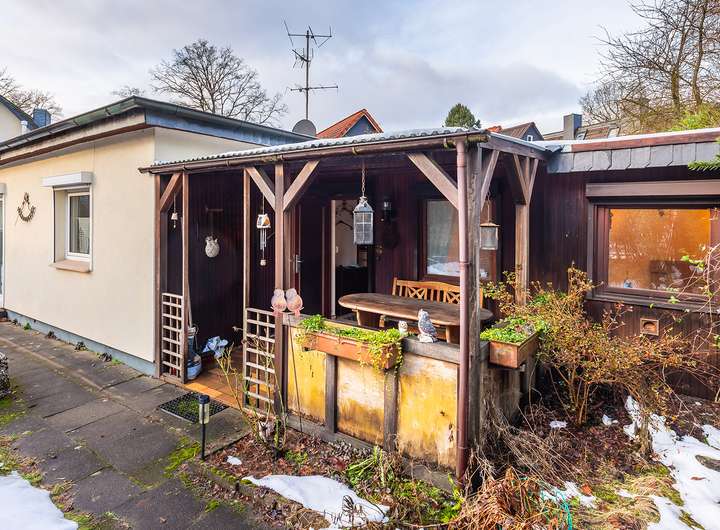 Der zum Verkauf stehende Bungalow befindet sich in einem einfachen und teilweise renovierungsbedürftigen Zustand.