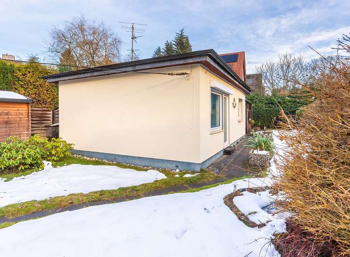 Der angebotene Bungalow liegt in einer 30er-Zone dessen Umgebung von viel Grün geprägt wird.