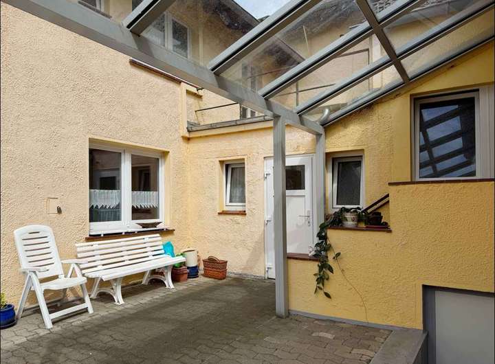 Beide Gebäude kann man vom Innenhof betreten. Der Hofbereich mit Begrünung wurde erst in den letzten Jahren neu angelegt.