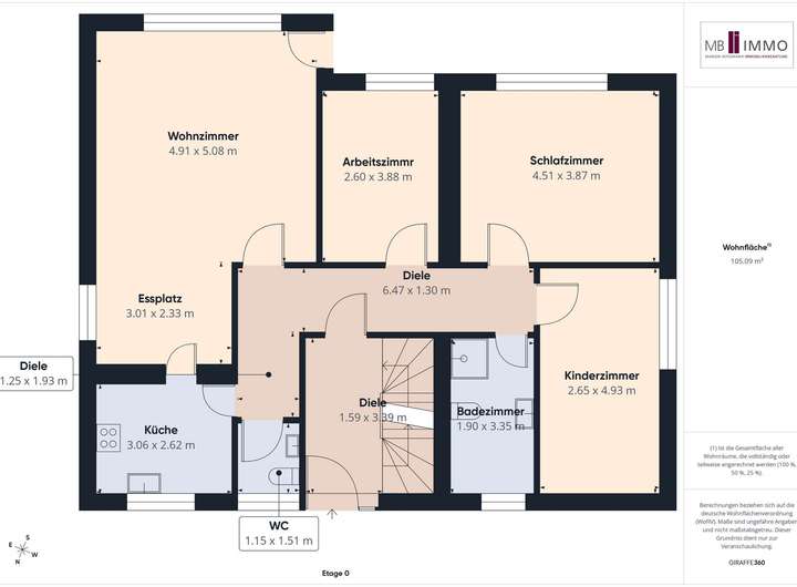 Sie öffnen die Haustür und befinden sich in der großen Diele. Von hier aus führt Sie die Treppe ins Obergeschoss und in den Keller. Die Wohnbereiche im Erdgeschoss und im Obergeschoss haben eine eigene Wohnungstür und können dadurch auch als einzelne Wohnungen genutzt werden.