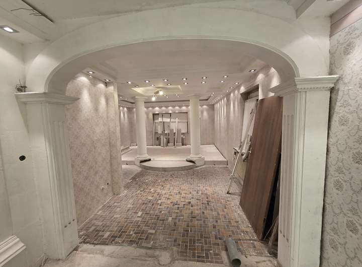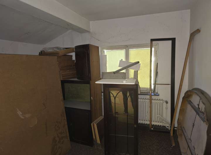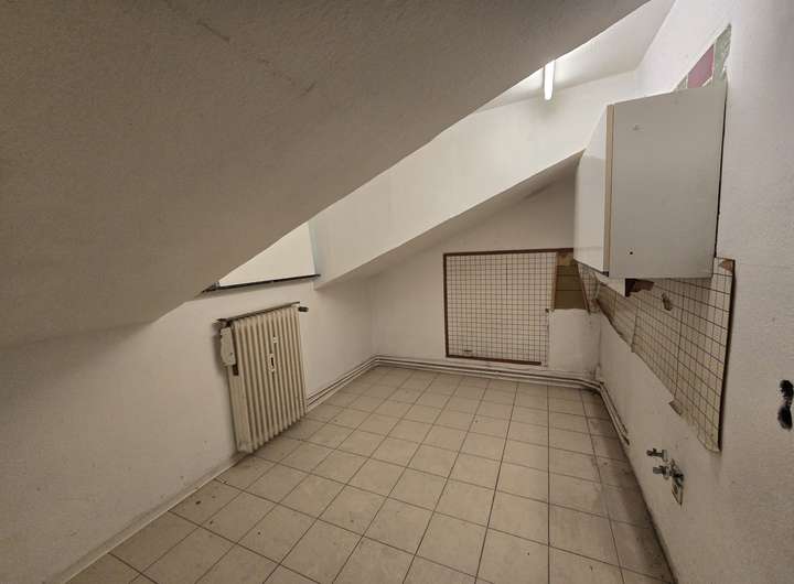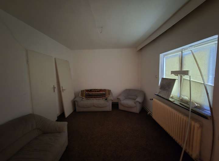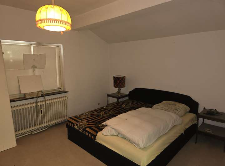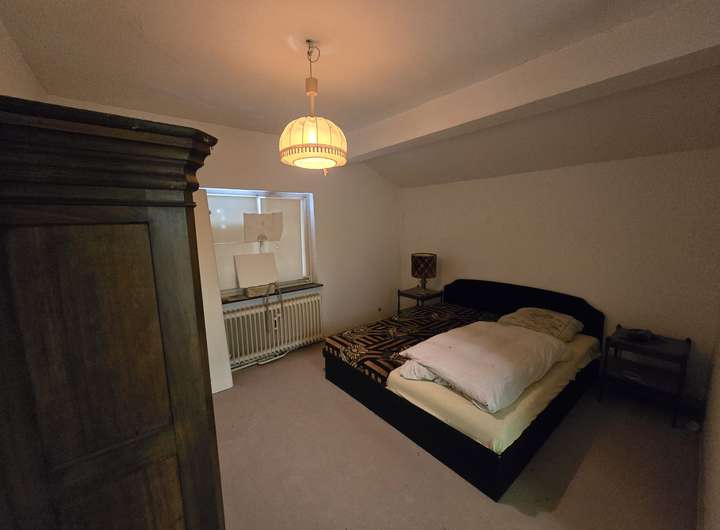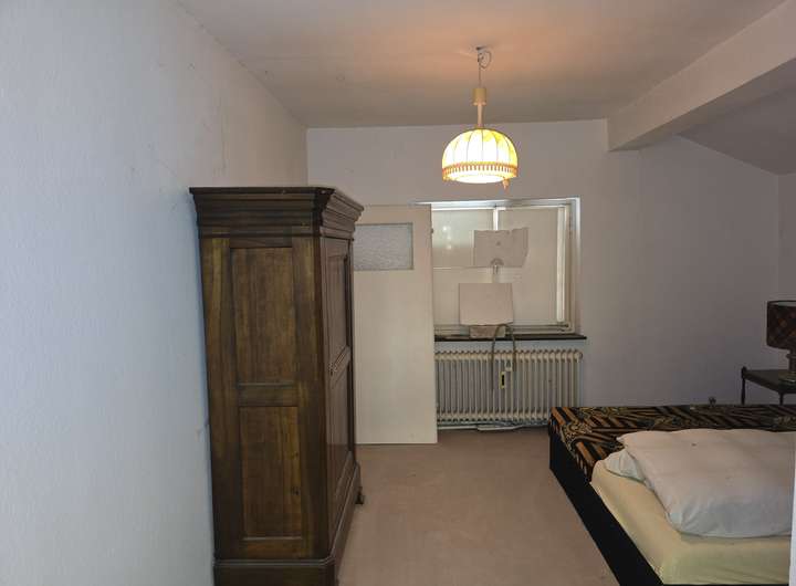 Im vorderen Bereich befindet sich das Haupthaus, dessen Grundstruktur aus mehreren Bauabschnitten hervorgeht – ursprünglich errichtet für einen Schützenverein, wurde es später sukzessive zu einem 3- bis 4-Familienhaus erweitert. Die Grundsubstanz ist solide, allerdings befindet sich das Innere aktuell in einem teilsanierten Zustand, was neuen Eigentümern die Freiheit bietet, nach eigenen Vorstellungen zu gestalten.