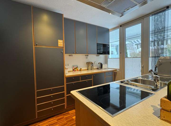 Die Wohnfläche (ca. 156m²) erstreckt sich größtenteils über das Erdgeschoss und ermöglicht ein barrierearmes Wohnen auf einer Ebene. Herzstück des Hauses ist die Einbauküche mit Kochinsel und direktem Zugang zur sonnigen Holzterrasse. Die Küche ist im Kaufpreis enthalten.