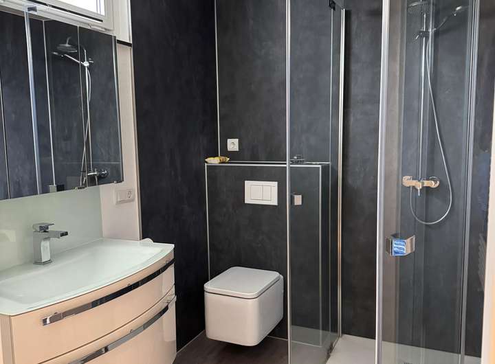 Auf dieser Ebene befinden sich außerdem ein Gäste-WC, ein modernes Hauptbad mit Dusche, das Schlafzimmer sowie zwei weitere flexibel nutzbare Räume, die sich ideal als Kinder-, Arbeits- oder Gästezimmer eignen.
