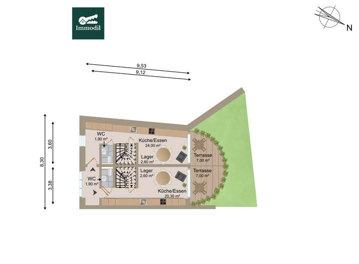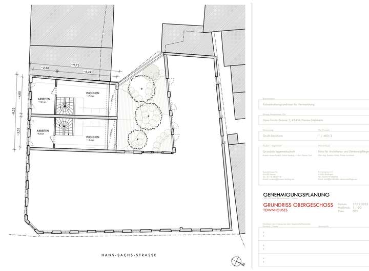Es entstehen zwei Townhouses mit ca. 77 m² bzw. 87 m² Wohnfläche (jeweils auf drei Ebenen). Die Raumaufteilung ist als modernes Stadthaus konzipiert: unten das Leben, oben die Rückzugsräume.