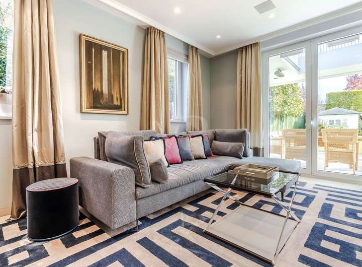 Eine repräsentative Raumaufteilung auf drei lichtdurchfluteten Wohnebenen, eine sonnige 44 m² große Südost-Terrasse, ein schmuckes Gärtnerhaus sowie eine Doppelgarage bieten hohen Wohnkomfort auf einem traumhaft angelegten Grundstück.