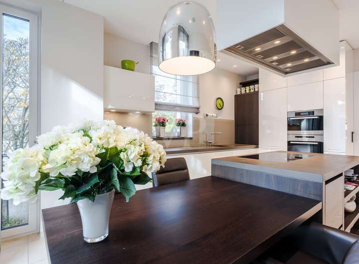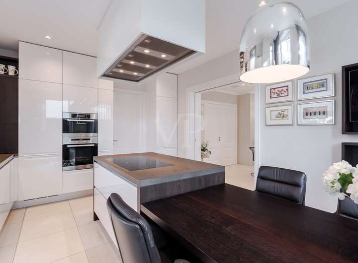 Die Küche ist mit hochwertigen Miele-Geräten ausgestattet. Ein gemütlicher Frühstücksplatz bietet hier den idealen Raum für einen angenehmen Start in den Tag.