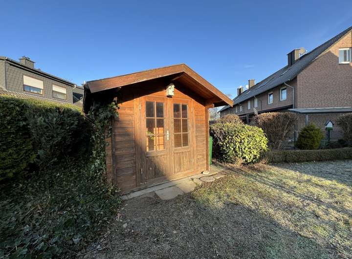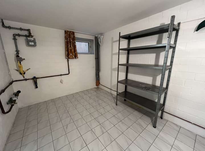 Der Vollkeller hält zusätzliche Nutzflächen und Stauraum sowie die Gastherme (Bj. 2008) bereit, Gartengeräte oder Fahrräder finden Platz im Gartenhaus.