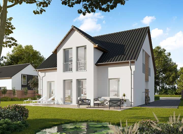 Ob mit extravagantem Zwerchgiebel, modernem Giebel mit Pultdach oder Giebelkrone, unser Cremlingen ist sehr wandelbar und immer ein Hingucker. Und auch im Innenbereich profitiert der Grundriss durch den Extraraum des Giebels.