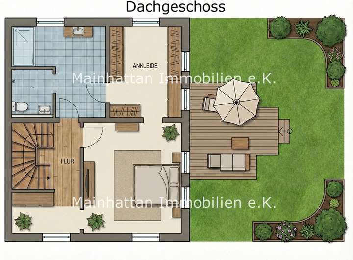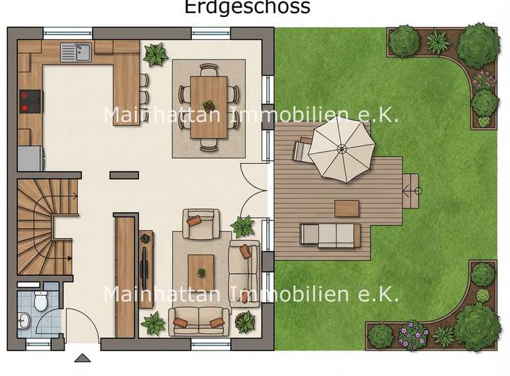 Von hier aus gelangen Sie direkt auf die Terrasse und in den liebevoll geplanten Gartenbereich mit: