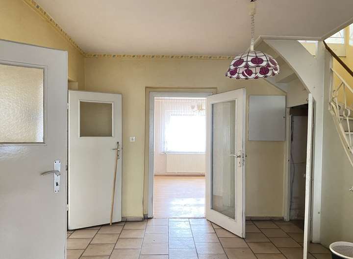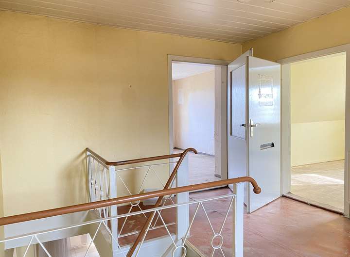 Im Erdgeschoss befinden sich 2 Wohnzimmer, eine Küche, Bad mit Wanne + Fenster, Veranda und Flur.