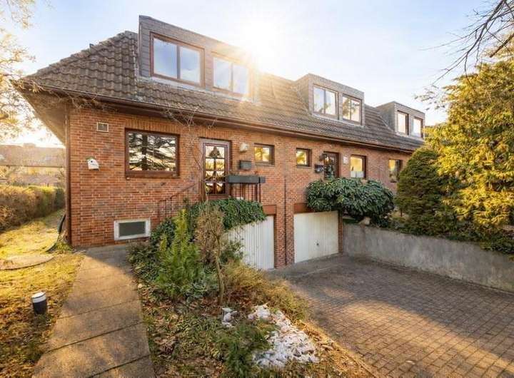 Willkommen Zuhause in Hamburg-Niendorf: Dieses gepflegte Familien-Endreihenhaus überzeugt durch eine ruhige Wohnlage, ein außergewöhnlich großzügiges Grundstück von ca. 424 m² und ein durchdachtes Raumangebot. Mit rund 106 m² Wohnfläche sowie zusätzlichen ca. 46 m² Nutzfläche im Vollkeller bietet die Immobilie ideale Voraussetzungen für Paare und Familien mit 2 Kindern. Bereits im Erdgeschoss zeigt sich der wohnliche Charakter des Hauses. Eine großzügige Diele mit Gäste-WC empfängt Bewohner und Gäste. Die offene Wohnküche bietet viel Platz für den familiären Mittelpunkt. Herzstück des Hauses ist der helle, angeschlossene Wohn- und Essbereich mit direktem Zugang zur Terrasse und in den weitläufigen Garten. Der Kamin sorgt für eine behagliche Atmosphäre und unterstreicht das gemütliche Ambiente. Große Fensterflächen schaffen eine freundliche, lichtdurchflutete Wohnqualität. Im Obergeschoss stehen drei gut geschnittene Zimmer zur Verfügung, die flexibel als Schlaf-, Kinder-, Gäste- oder Arbeitszimmer genutzt werden können. Das Badezimmer ist funktional ausgestattet und bietet ausreichend Platz für den Familienalltag. Der geräumige Vollkeller erweitert die Nutzungsmöglichkeiten erheblich, ob als Vorratsfläche, Hobbyraum oder Hauswirtschaftsbereich. Die Gaszentralheizung wurde 2008 erneuert und bildet vorerst eine solide technische Basis. Ein besonderes Highlight ist die Tiefgarage mit integrierter Wallbox, die modernes und zukunftsorientiertes Wohnen unterstützt. Zusätzlich stehen 2 weiterer Stellplatz vor der Garage zur Verfügung. Die unmittelbare Nähe zur Schule, nur etwa 250 Meter entfernt, macht das Haus besonders attraktiv für Familien mit Kindern. Dieses Endreihenhaus verbindet Großzügigkeit, solide Bauweise aus dem Jahr 1983 und ein außergewöhnlich großes Grundstück mit einer gefragten Lage in Hamburg. Eine Immobilie mit viel Potenzial, die ein echtes Zuhause-Gefühl vermittelt.