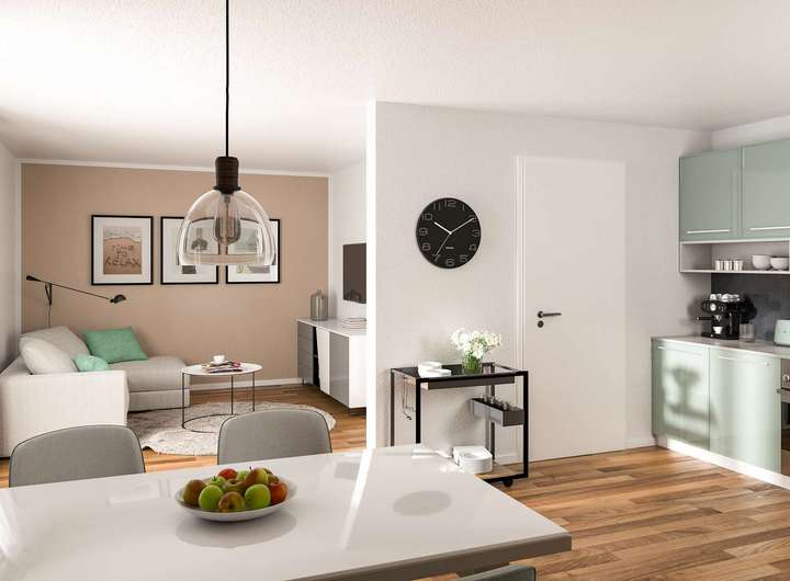 - Gemütlicher Wohn-Essbereich mit offener Küche