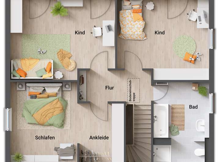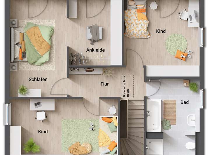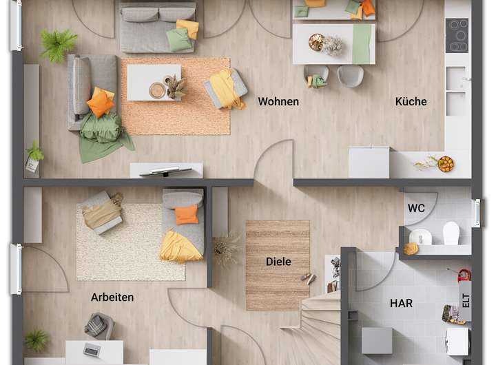 • Fußbodenheizung: Warme Füße? Auch die Fußbodenheizung ist inklusive. Sie steigert nicht nur den Wert Ihres Hauses, sondern sorgt ganz nebenbei noch für echtes Wohngefühl.