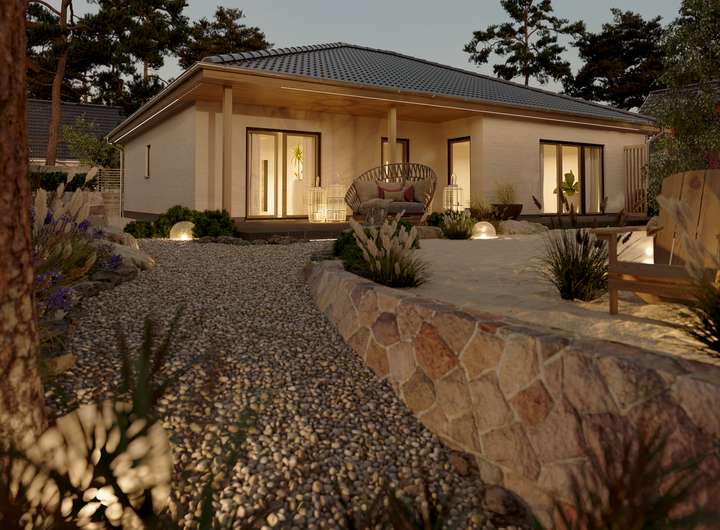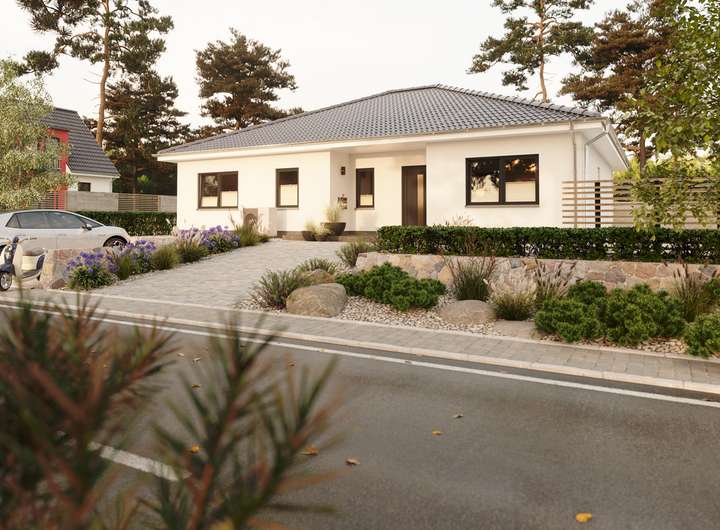 Unser Tipp: Wie bei allen Bungalows von Town & Country Haus können Sie sich mit dem Komfort-Paket auch im Alter höchste Wohn- und Lebensqualität sichern. Das durchdachte Konzept beginnt schon an der Eingangstür – niedrige Schwellen minimieren Barrieren im ganzen Haus. Eine bodentiefe Dusche und ein höhenverstellbares Wand-WC bieten höchsten Komfort im Badezimmer. Vergrößerte Innentüren erleichtern den Durchgang.