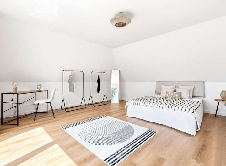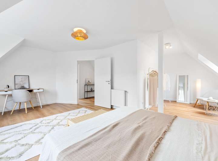 Im Obergeschoss finden Sie 3 geräumige Schlafzimmer, teilweise mit Balkon, sowie ein Vollbad.