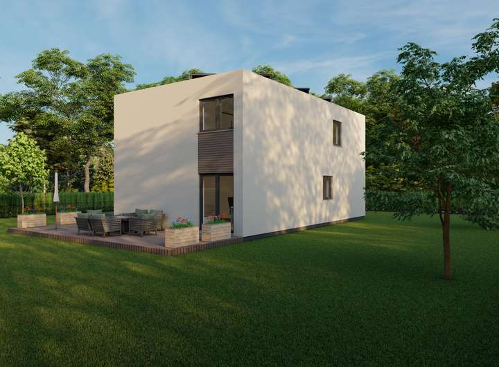 Die Hausreihe ROHE besticht mit modernem Design und cleveren Lösungen der Innenarchitektur. Das Flachdach gibt den Häusern der Baureihe vor allem ein modernes Aussehen. Die hohe Variabilität der Konstruktion kommt den Liebhabern von originellen architektonischen Lösungen entgegen.