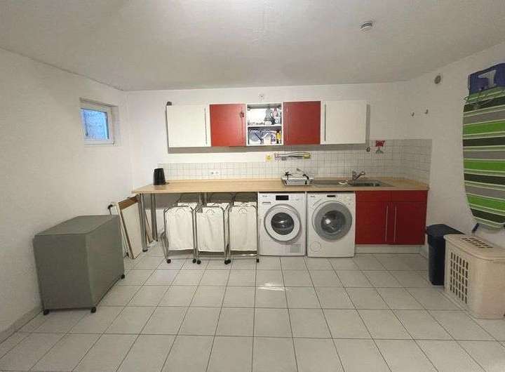Zur Ausstattung gehören eine Arbeitsplatte, Schränke sowie eine hochwertige WASCHMASCHINE und ein hochwertiger TROCKNER von MIELE, die für Qualität, Langlebigkeit und erstklassige Pflegeeigenschaften stehen