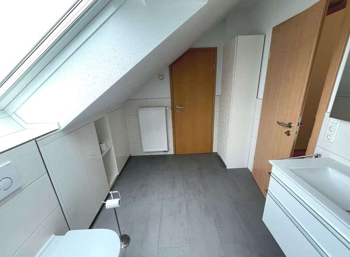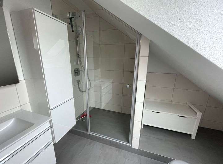 + Großzügiges separates Studio mit einem exklusiven Duschbad (Glas-Duschkabine, WC, Waschtisch, Einbauschränke) einer Gaube und zusätzlichem Stauraum/Nutzfläche von ca. 3 m² (aufwändig ausgebaut im Jahre 2019)