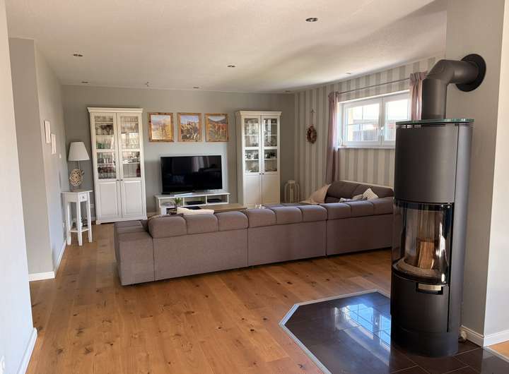 Im Winter sorgt der zentrale Kaminofen für behagliche Wärme.