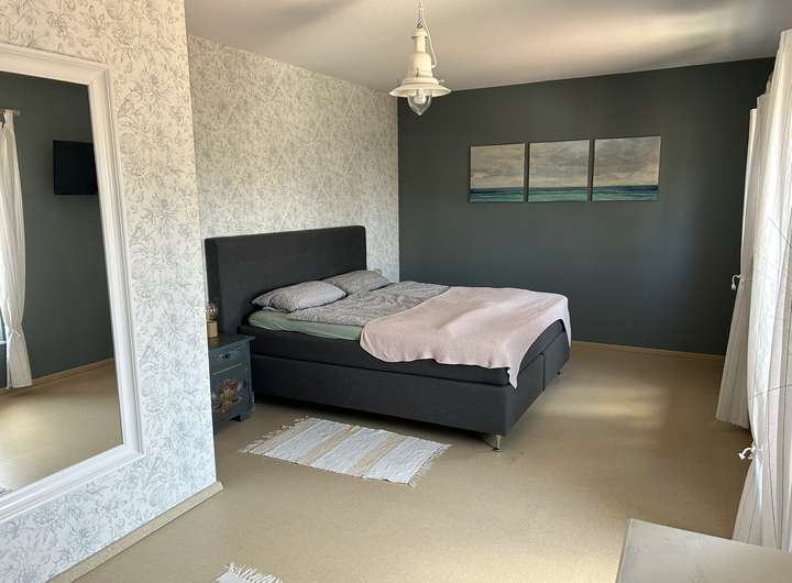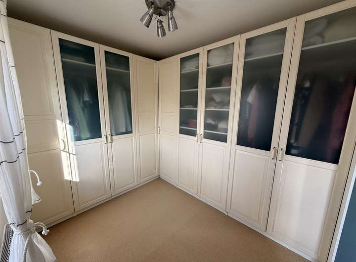 An das geräumige und lichtdurchflutete Elternschlafzimmer schließt sich das Ankleidezimmer an.