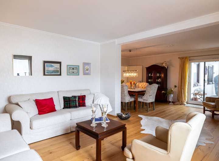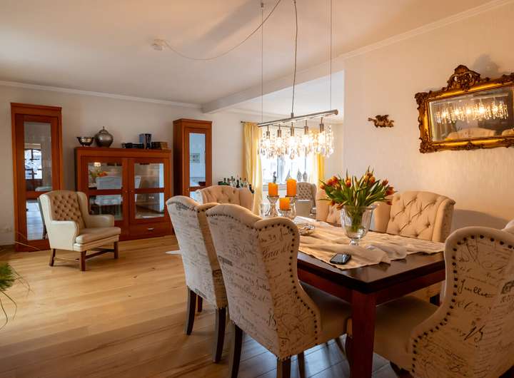 - im Wohnzimmer Echtholzparkett