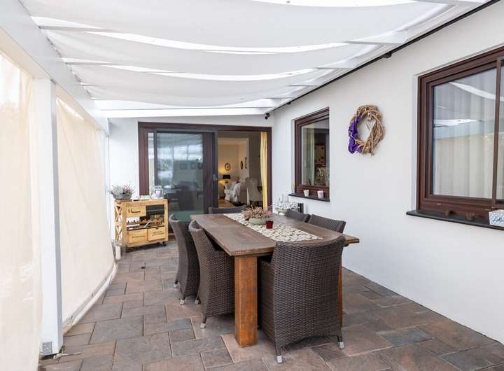 - überdachte Terrasse mit Windschutz