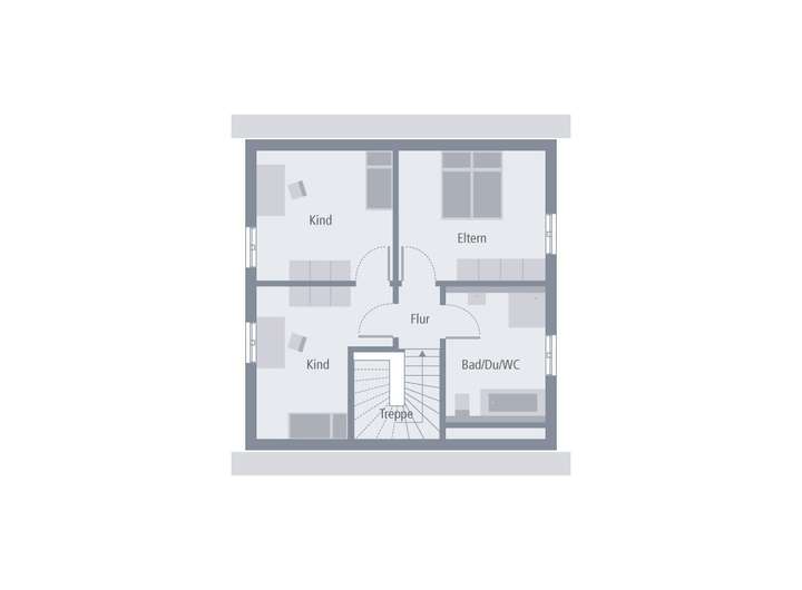 Schlichte Eleganz gepaart mit einem durchdachten Raumkonzept - das zeichnet das Einfamilienhaus Design 9.2 aus. Die geradlinige Architektur wird noch unterstrichen durch die zweifarbige Fassadengestaltung, die dem Haus eine besondere Note verleiht und sie optisch noch einmal zusätzlich aufwertet. Geradlinig geht es auch im Inneren weiter. Herzstück im Erdgeschoss ist der große und lichtdurchflutete Wohn-Ess-Koch-Bereich mit direktem Zugang zum Garten. Dieser ist räumlich getrennt von Hauswirtschaftsraum und Gäste-WC. Von der geräumigen Diele, in der ausreichend Platz für eine Garderobe ist, führt eine Treppe ins Obergeschoss. Hier wird der Wohnraum perfekt ausgenutzt. Zwei Kinderzimmer, ein Schlafzimmer für die Eltern sowie ein geräumiges Bad mit Wanne, Dusche und WC bieten hier einen idealen Rückzugsort. Auf einer Wohnfläche von rund 107 m² ist hier ein gemütlicher und komfortabler Wohlfühlort für die ganze Familie entstanden.