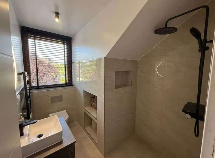 Im Obergeschoss befinden sich zwei Schlafzimmer sowie ein modernisiertes Badezimmer mit Walk-In-Dusche und hochwertiger Ausstattung.