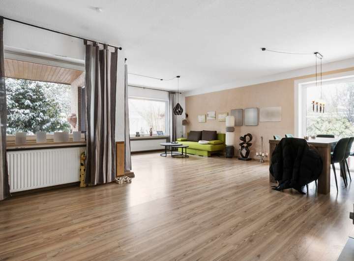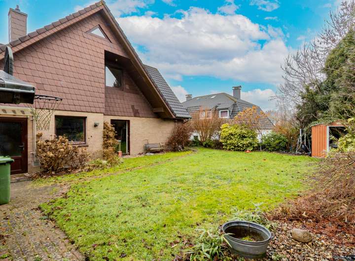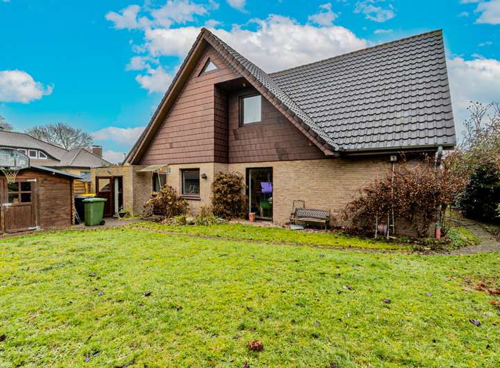 Dieses Einfamilienhaus mit separater Einliegerwohnung befindet sich in rückwärtiger Bebauung auf einem 524m² großen Grundstück in Ganderkesee und bietet mit ca. 214m² Wohnfläche vielseitige Nutzungsmöglichkeiten. Ursprünglich als Flachdachbungalow errichtet, wurde die Immobilie 1992 aufgestockt und 2015 durch eine Dachgaube erweitert.