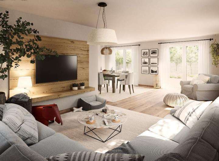 Sie suchen romantisches Flair und zeitloses Eleganz? Das Landhaus 142 verbindet beides auf großzügige und sympathische Weise: lichterfüllte und weitläufige Räume warten auf Ihre Gestaltungsideen. Allein das Wohnzimmer bietet Bewegungsfreiheit für die ganze Familie.