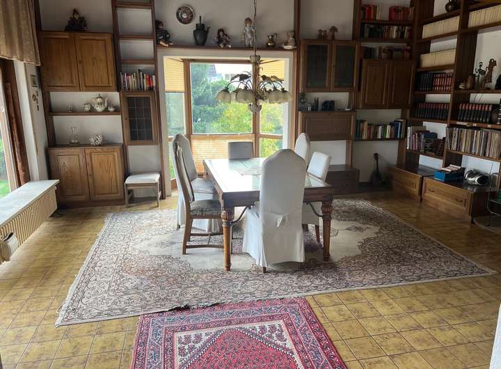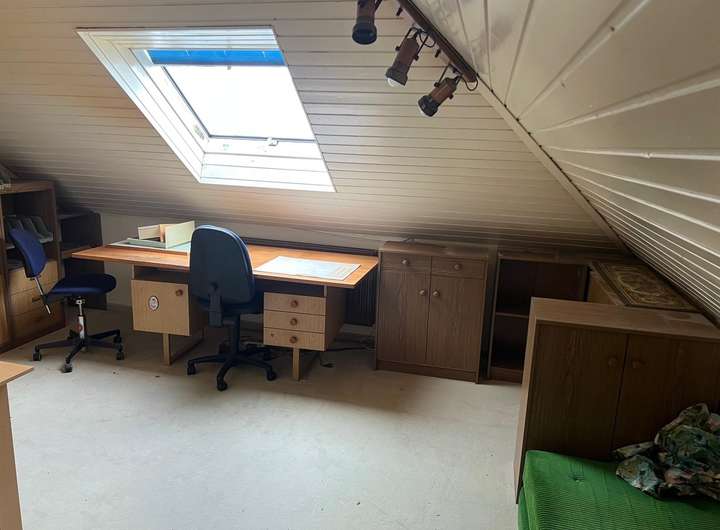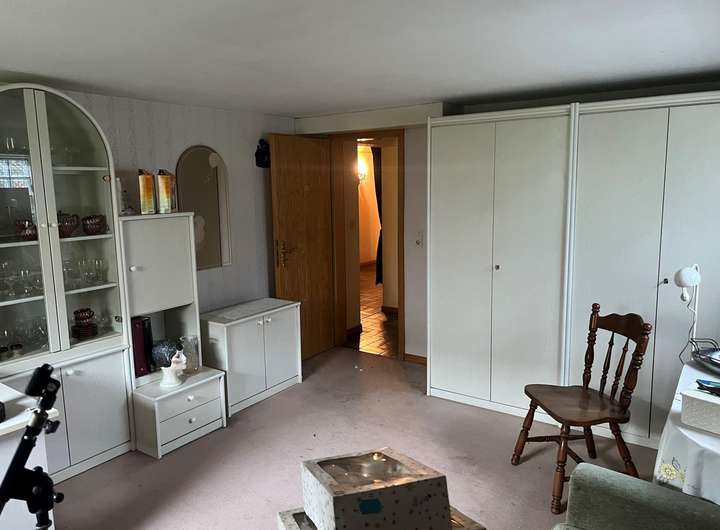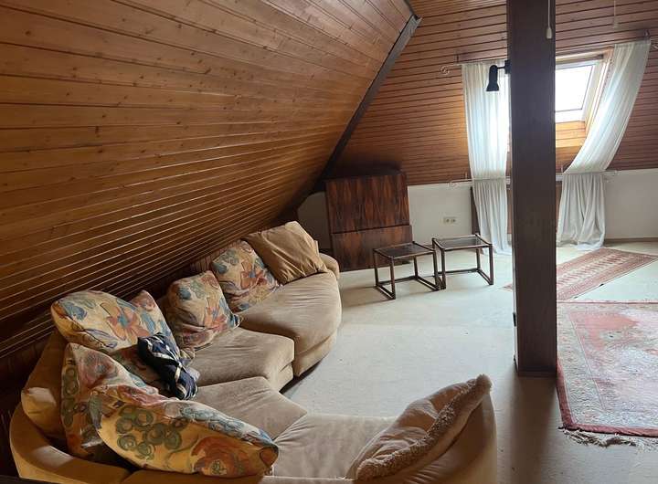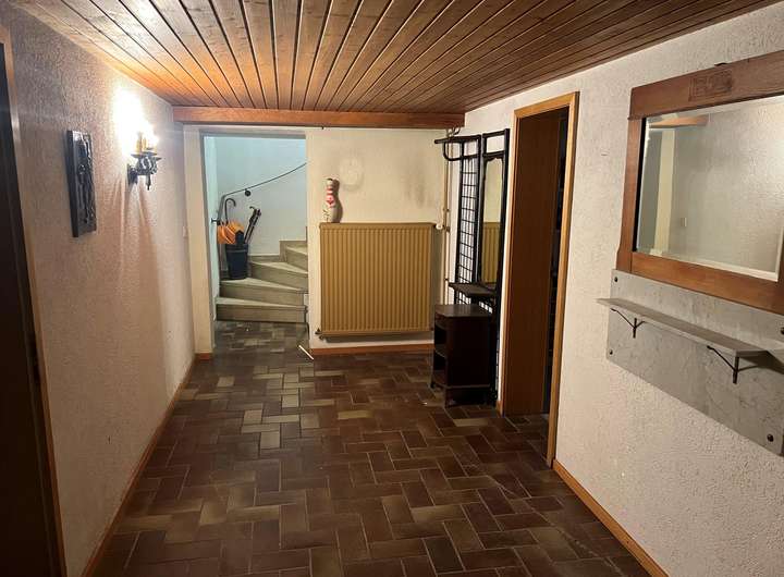 Im Hochkeller befinden sich ein Gäste- oder Kinderzimmer mit eigenem Duschbad, ein großer Hobbyraum, mehrere Lagerräume sowie die Heizungsanlage. Ein Carport mit direktem Zugang zum Untergeschoss und eine Gartenhütte ergänzen dieses großzügige Gebäude.