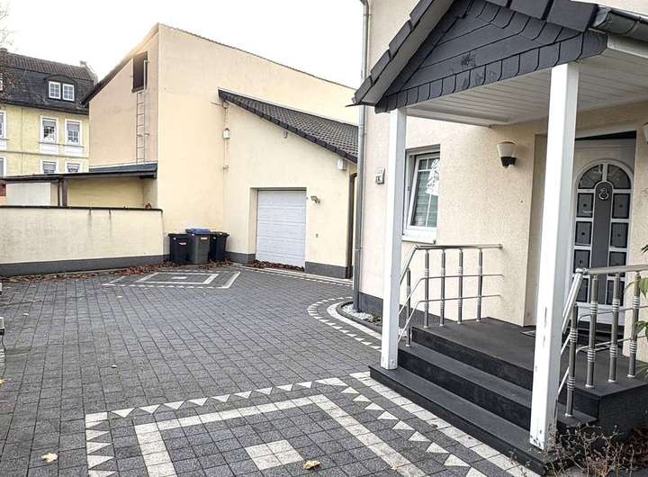 Zu den weiteren Annehmlichkeiten gehören eine Garage mit Anbau zur individuellen Nutzung, sowie weitere Stellplätze auf dem ebenfalls großzügig gehaltenen Hof.