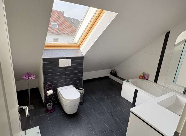 Ein großzügiges Dachstudio, sowie ein weiteres großes Tageslichtbad mit Badewanne ist im Dachgeschoss vorzufinden.