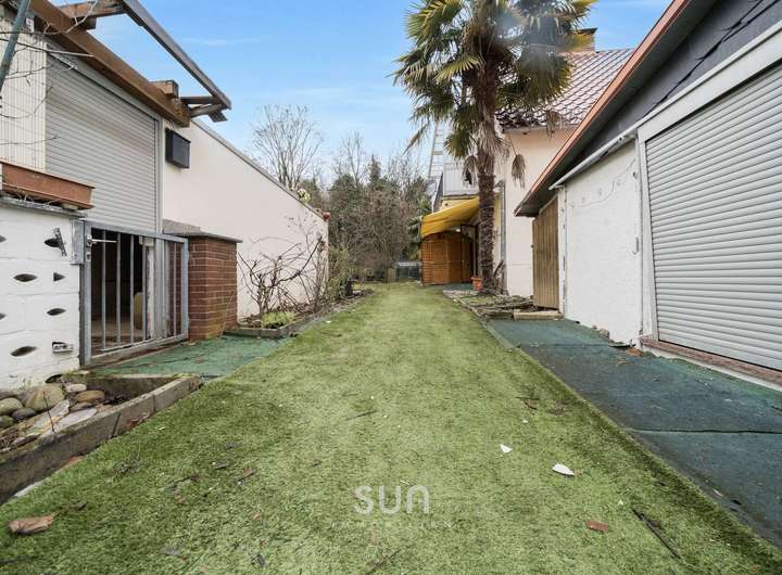 Ein zusätzlicher, separat stehender Flachbungalow mit ca. 50 m² Nutzfläche erweitert das Entwicklungsspektrum erheblich. Dieser Gebäudeteil wurde früher gewerblich genutzt und bietet nach Sanierung vielfältige Optionen: eigenständige Vermietung, Büro- oder Praxiseinheit, Serviced Apartment, Homeoffice-Lösung oder ergänzende Wohneinheit. Alternativ ist auch hier ein Rückbau denkbar, um Stellplätze, Garagenlösungen oder eine Aufwertung der Außenanlagen zu realisieren.